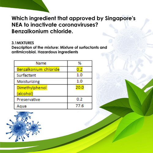 - Replace alcohol with a type kill germs active called Benzalkonium Chloride